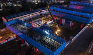 7月24日晚,记者在辽阳路快速路(福州路-海尔路段)工程现场看到,围挡内灯火通明、焊花四溅,施工人员挑灯夜战、作业有序,现场一派忙碌景象。据了解,辽阳路快速路(福州路-海尔路段)工程建成后,将成为青岛主城区快速路网的重要组成部分。